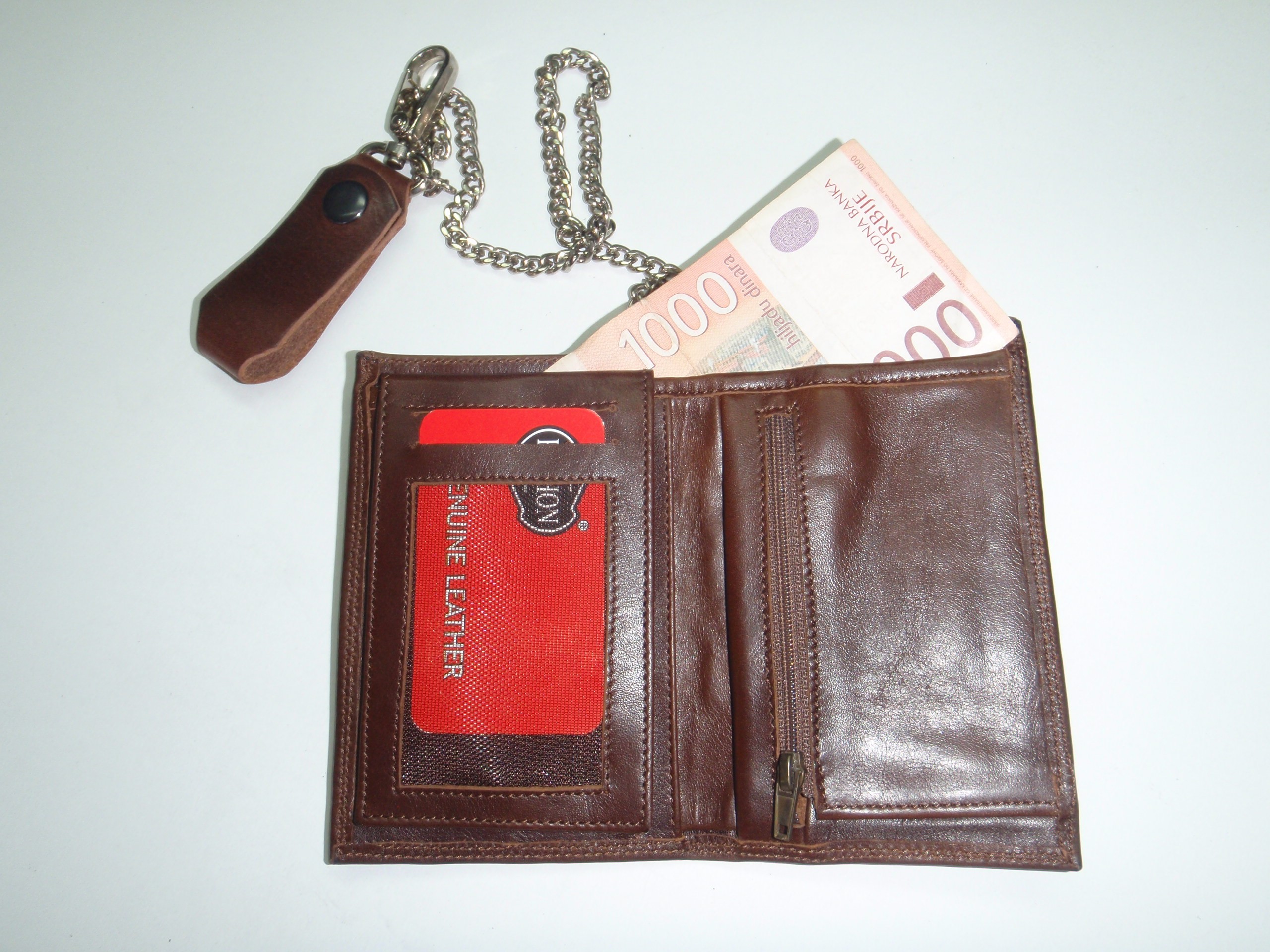 Novčanici Novčanici u bajker stilu sa lancem i priključkom za kaiš. Napravljeni od visoko kvalitetne goveđe kože.