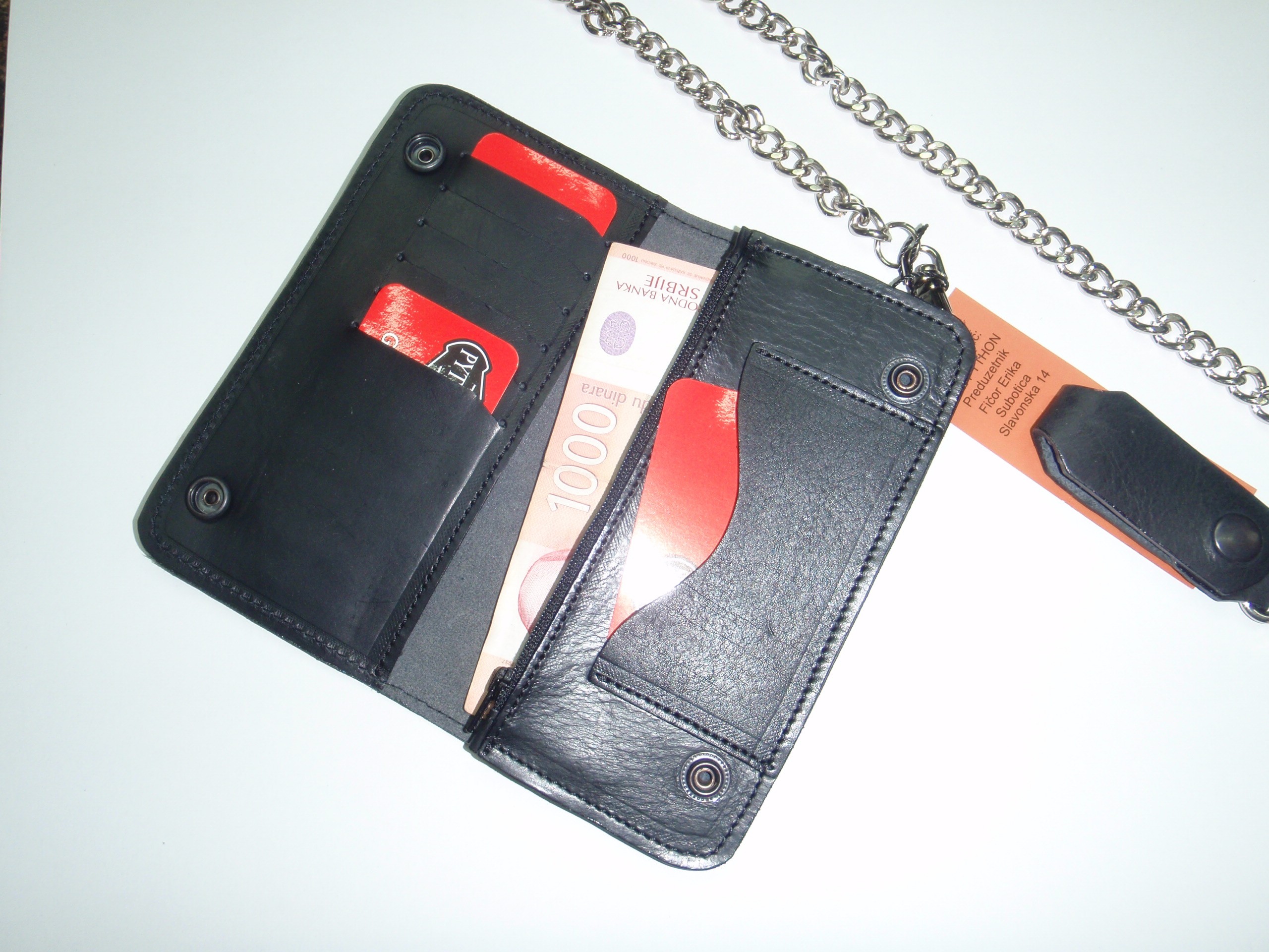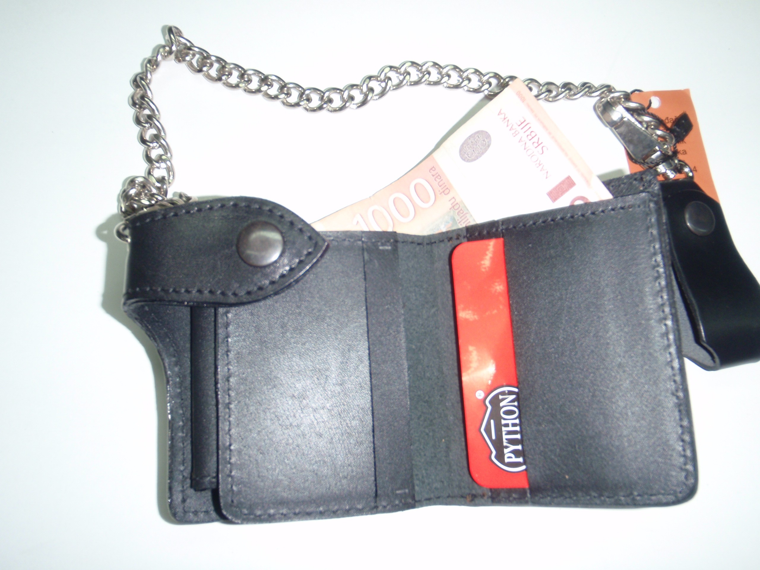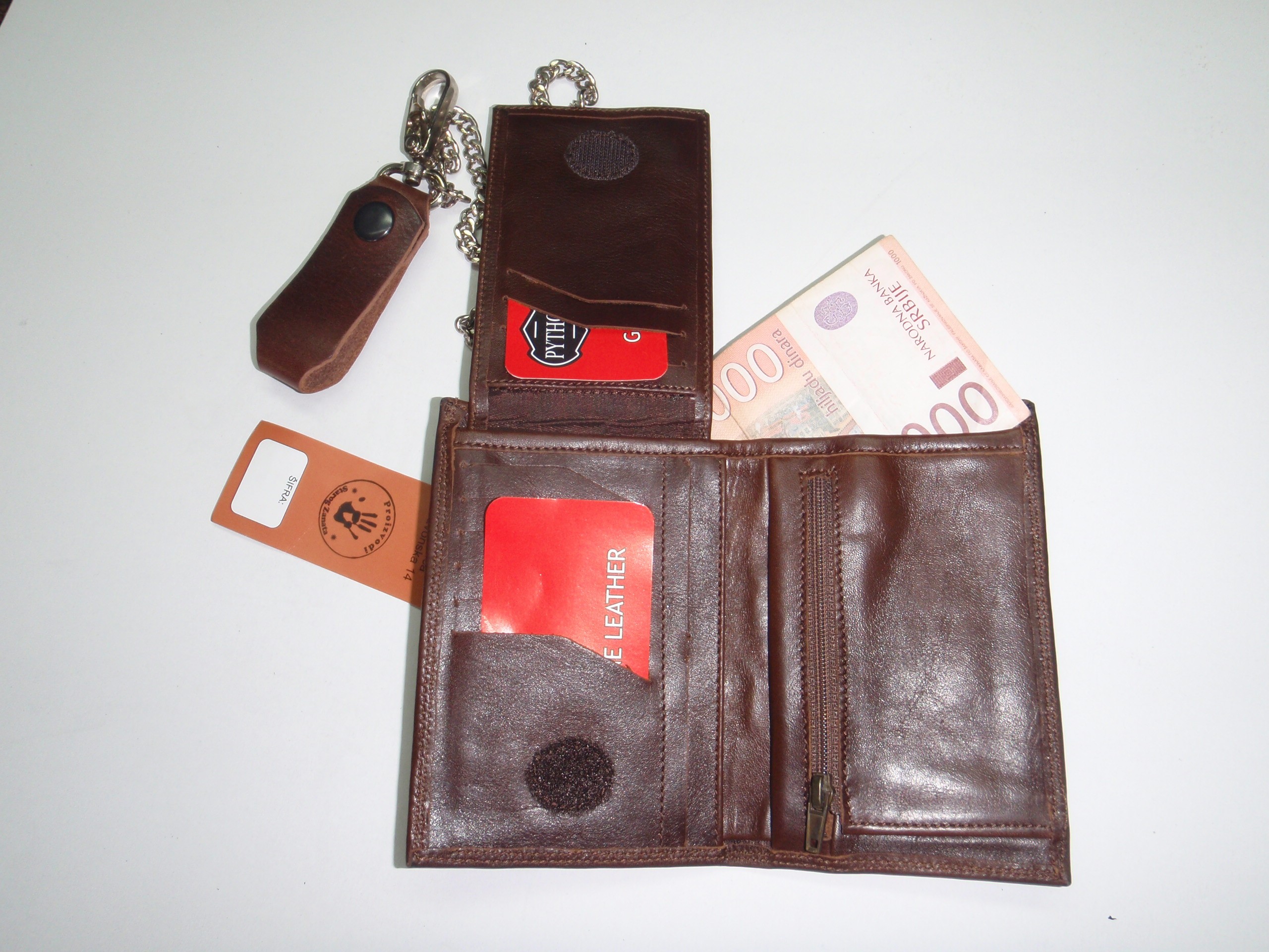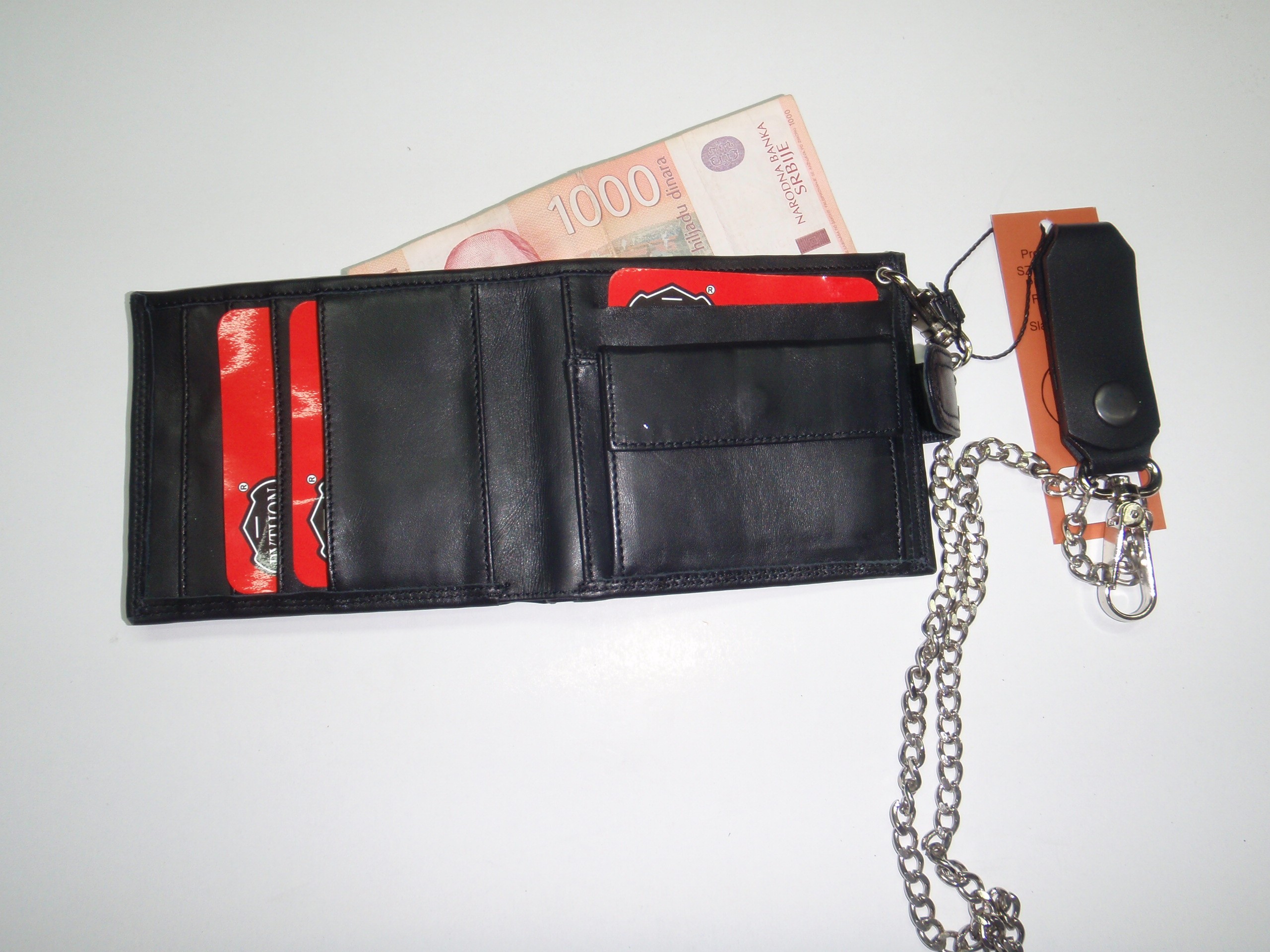 Novčanici Novčanici u bajker stilu sa lancem i priključkom za kaiš. Napravljeni od visoko kvalitetne goveđe kože.