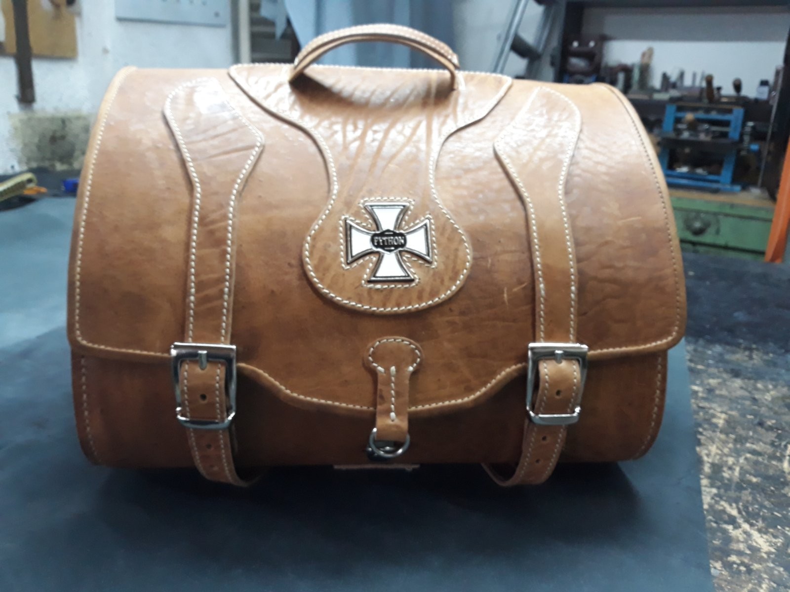 Sissy Bar Torbe su ručno rađene od izdržljive, visoko kvalitetne 3 - 4 mm goveđe kože, čineći ih otpornim na uticaje okoline i mehaničke stresova. Zahvaljuljući vodootpornoj, debeloj koži i kvalitetne postave lako se čiste i održavaju. Modeli su univerzalni, tako da se mogu montirati na više tipova motora. Torbe pravimo u raznim dizajnima, sa nitnama, ukrašene kožnim trakama ili ručno ušivene. Za izradu sopstvenih ideja ne ustručavajte se da nas kontaktirate.